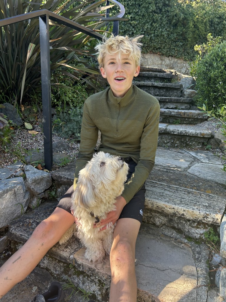 “Hi Christine! Teddy (named for his dad) is doing great. As you can see, he and our youngest son style their hair similarly. We love him so much and he is so into other dogs and people. We keep thinking we should get a second… I’ve been bringing him to the hospital with me (since he was tiny, to get him used to it) on the inpatient psychiatric unit and it’s going very well. He’s so loving and outgoing and it’s heartwarming to see the way withdrawn psychotic people will come out of their shells and lay down on the floor and let him love on them. Some of them probably haven’t been touched in years. Homeless people with schizophrenia, etc. It’s pretty amazing. I’m going to get him certified so he can be with me on the unit most days..” Heather